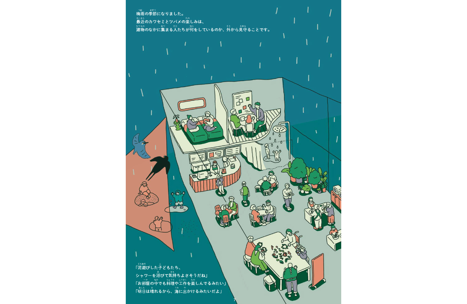 「未来ストーリーブック」は、神奈川県藤沢市の青少年野外活動施設「藤沢市少年の森」再整備に伴い、行政が策定した基本方針や基本構想を分かりやすく伝える絵本。子どもから大人まで、誰もが手に取りたくなる読みやすさと、未来を想像したくなる・プロジェクトに関わりたくなるわくわく感を詰め込み、ストーリーやイラストを通じて、プロジェクトの目指したい未来像を届けるツールである。