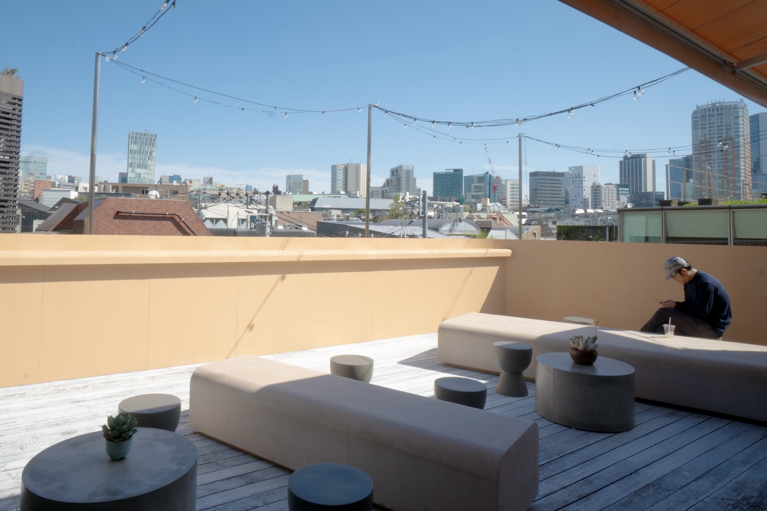 賑わいあふれる表参道の地上から階段を上がると、そこには都会の喧騒から切り離されたような穏やかな静けさが広がる。さらに店内奥に続くテラスへ進むと、渋谷のビル群や表参道の街並みを一望でき、都心にいながらも開放感が味わえる。