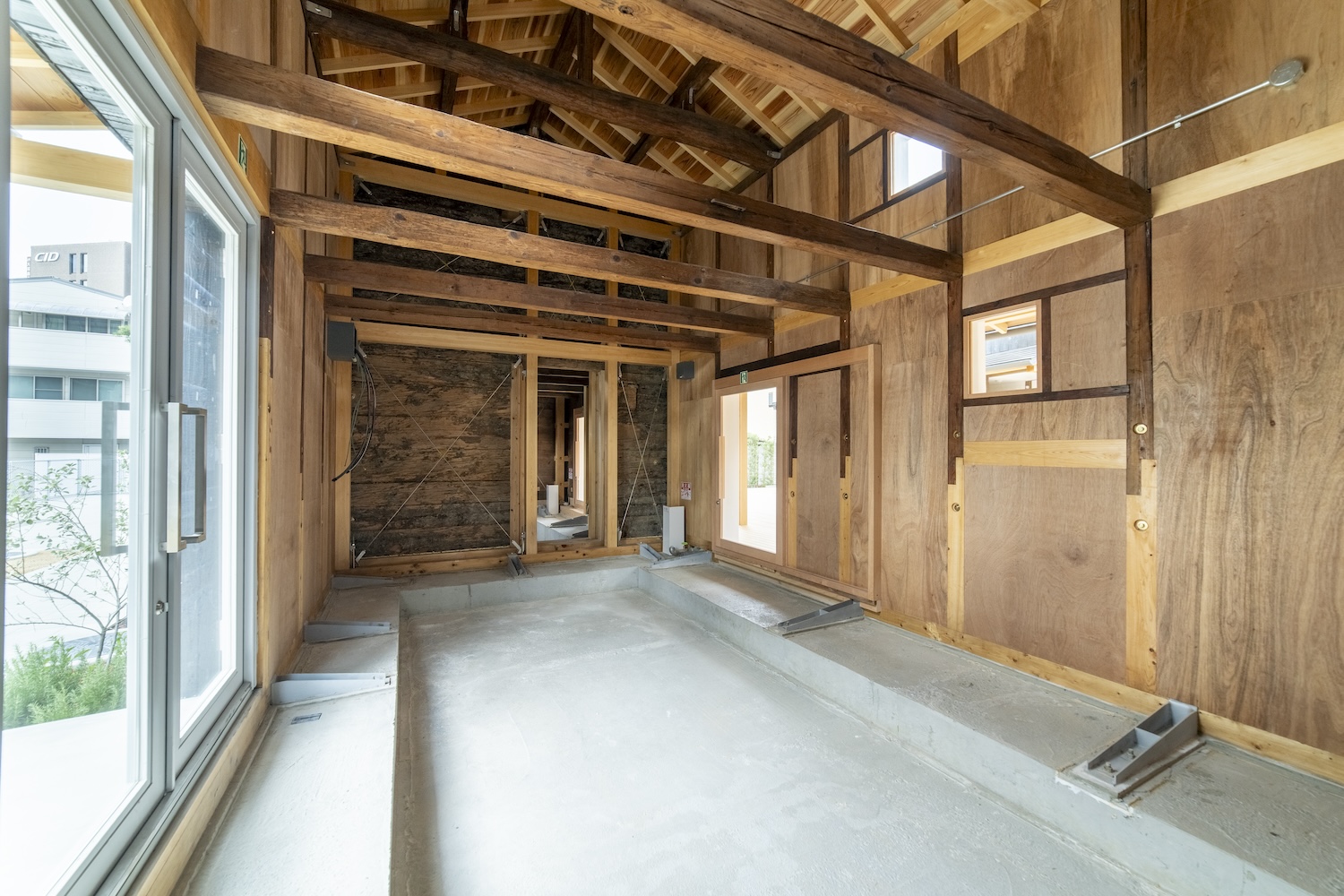 また、構造補強は空間再編と一体的に計画され、新規要素を隠すことなく建築の履歴として可視化することを意識した。